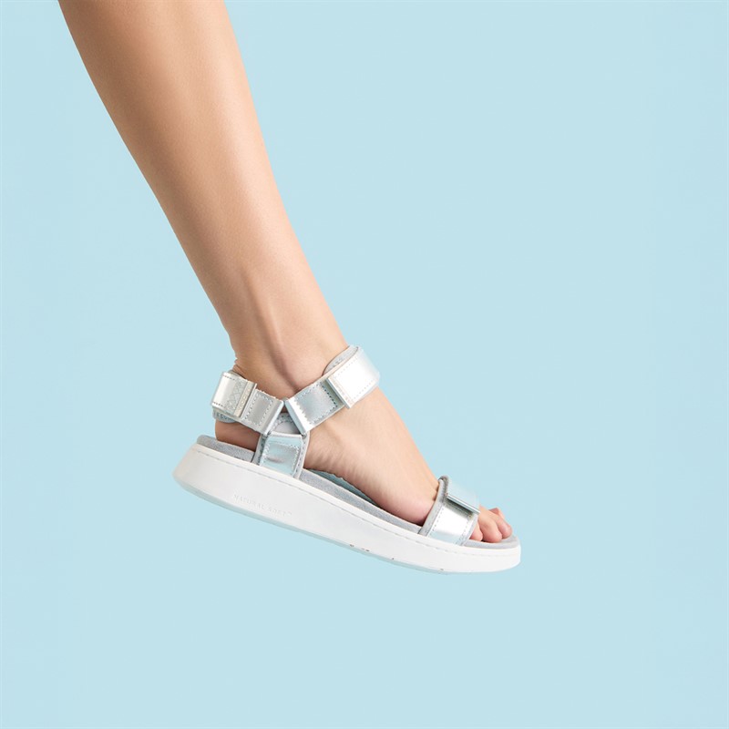 Woden Sandales métalliques Femme Ligne 039 Argent